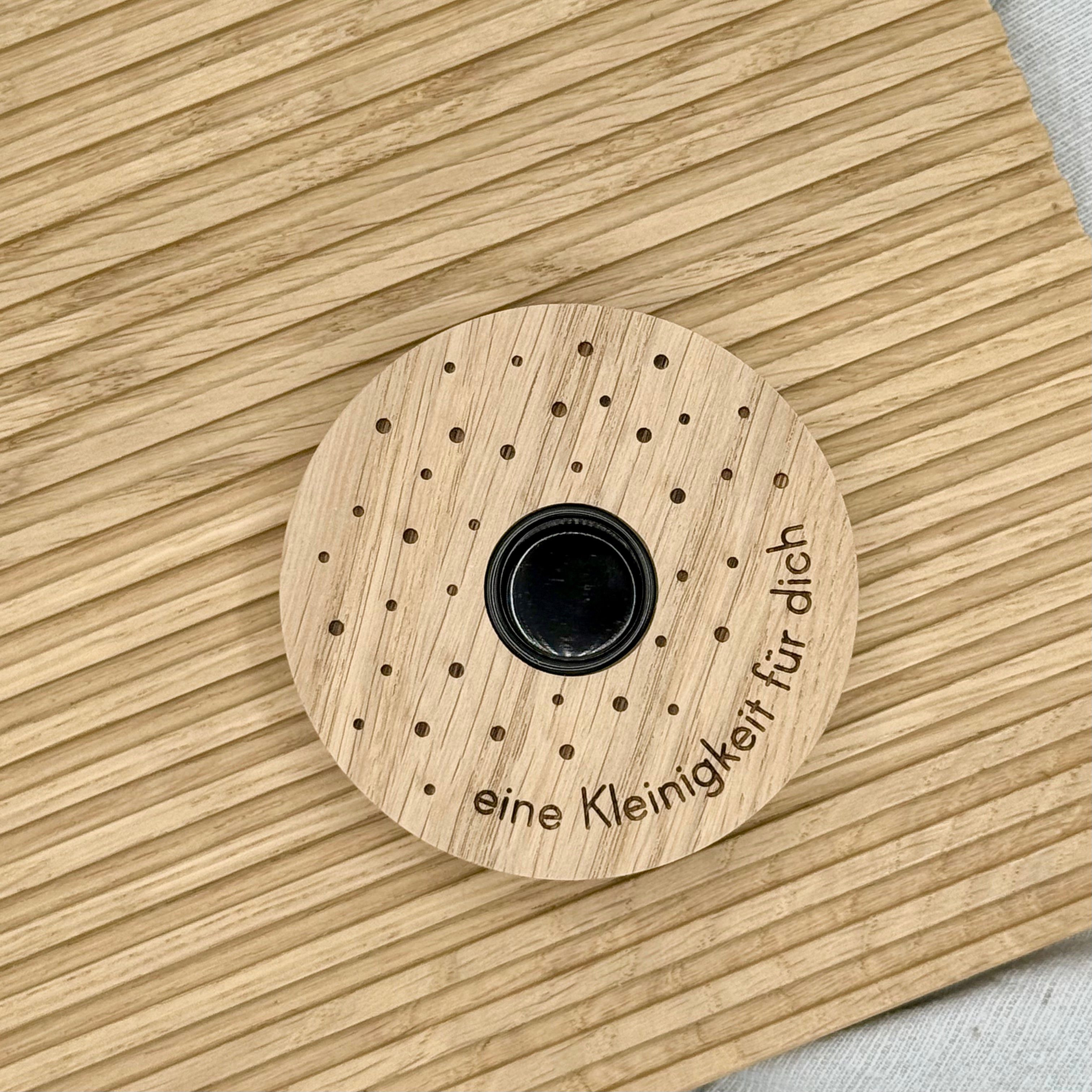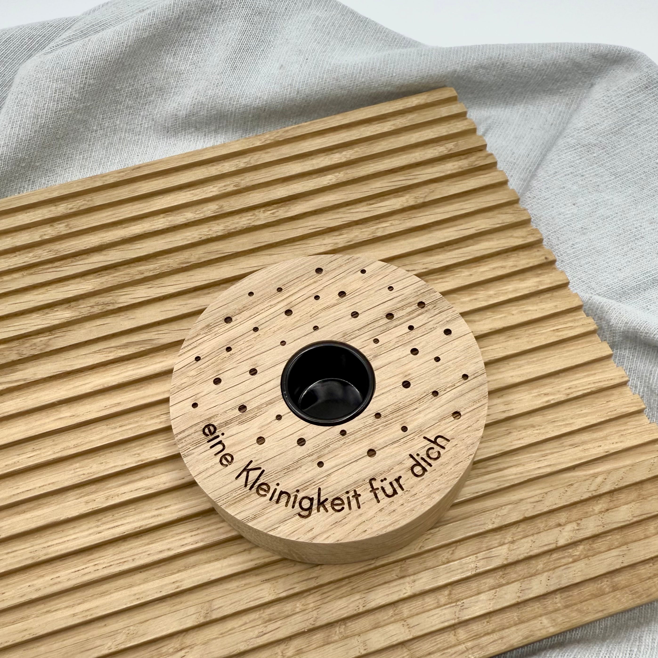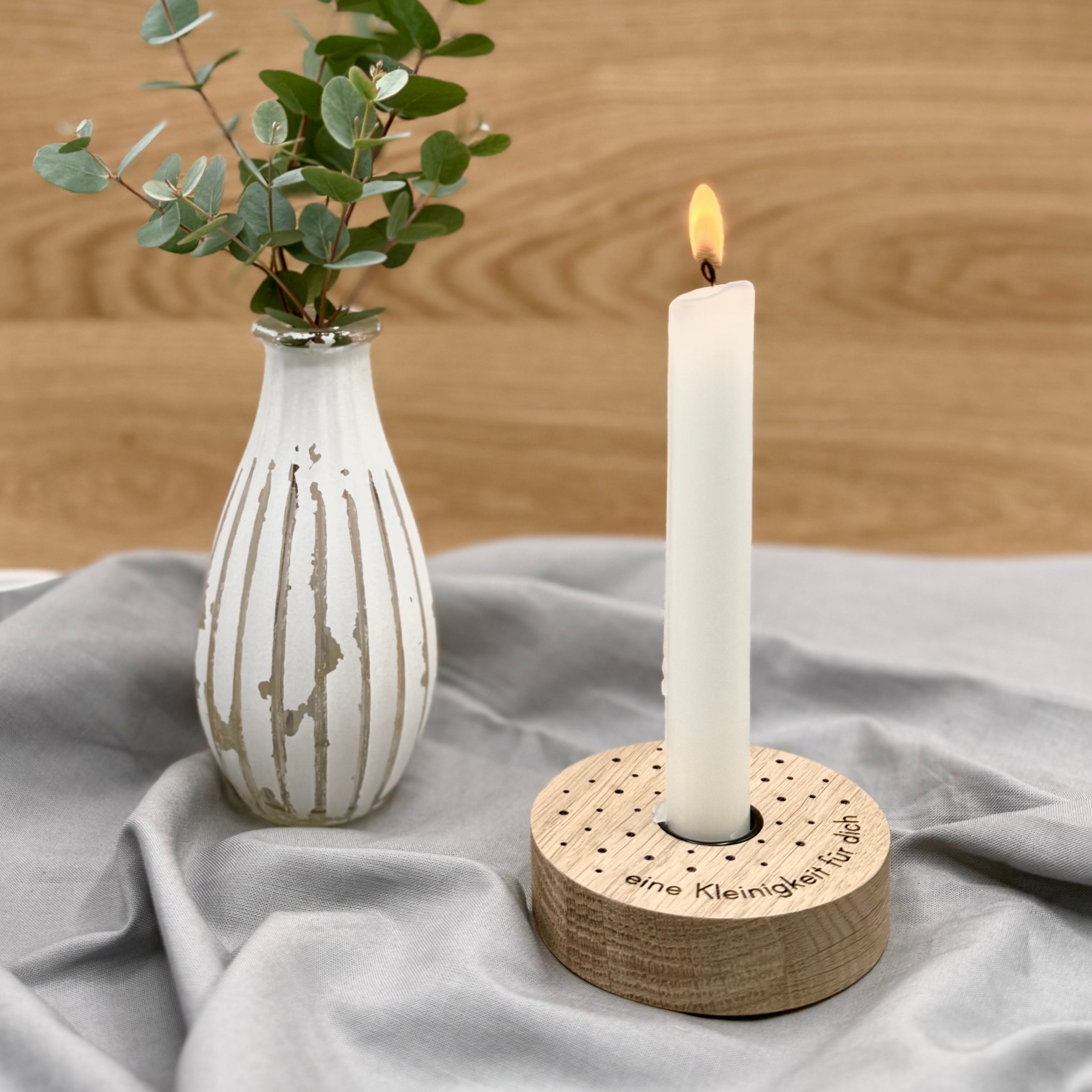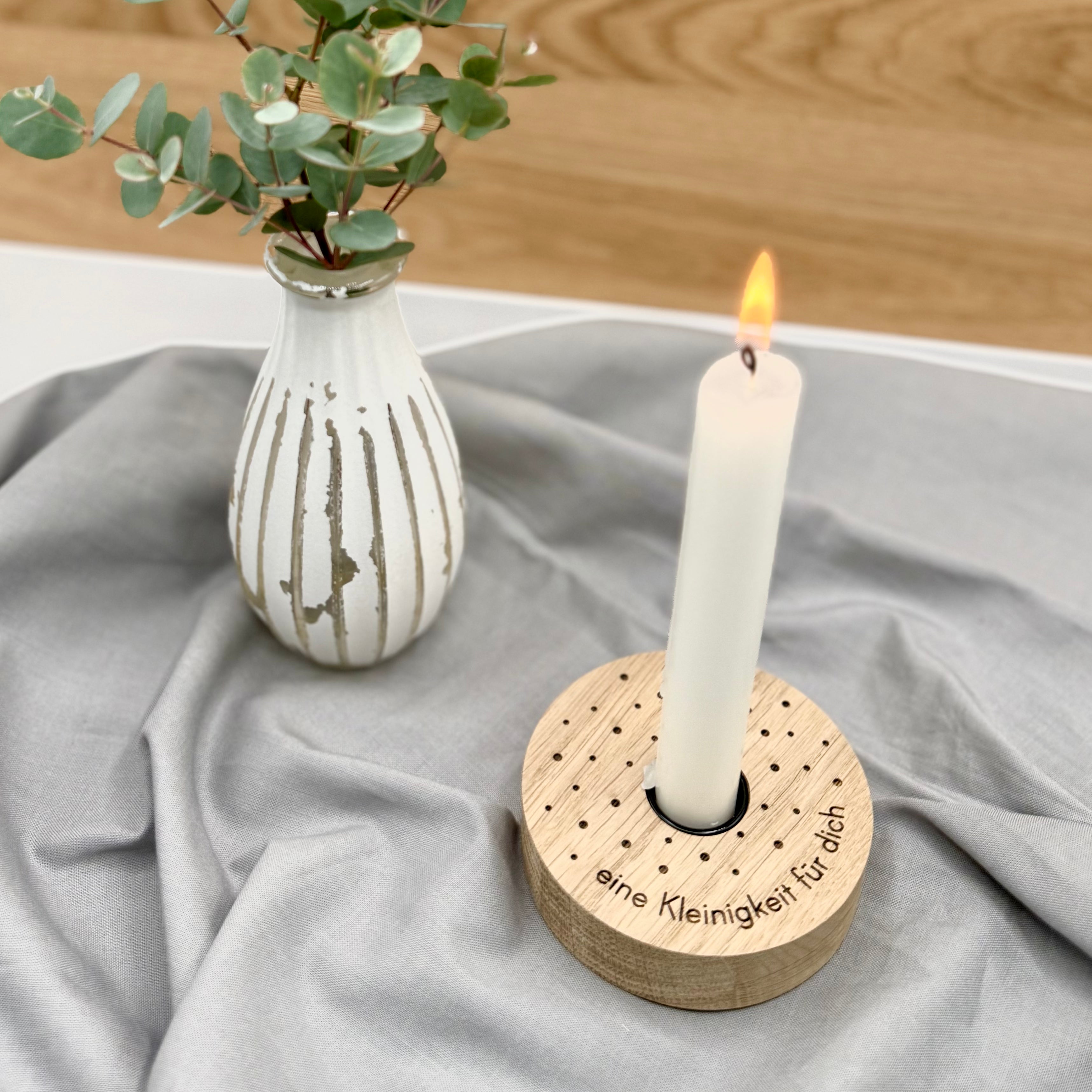 Kerzenhalter aus Eiche mit liebevoller Botschaft.